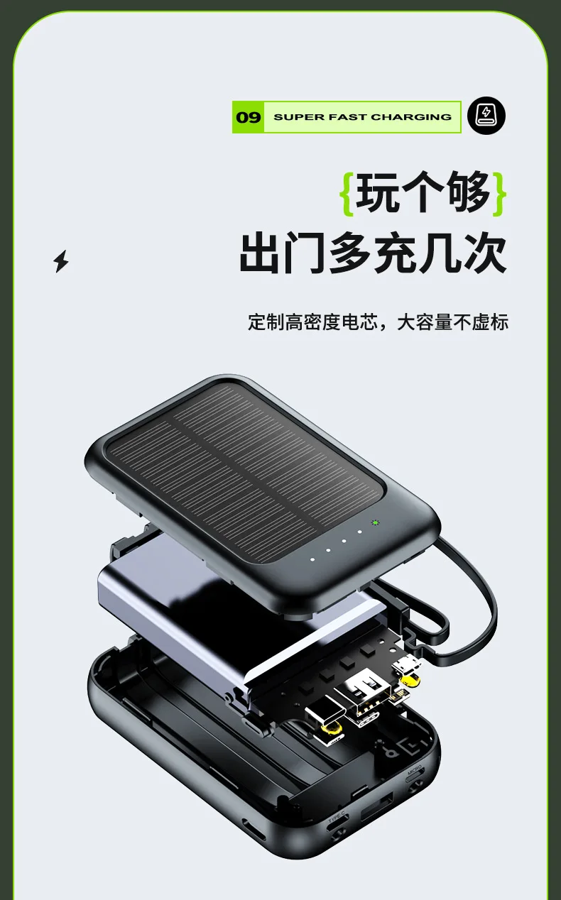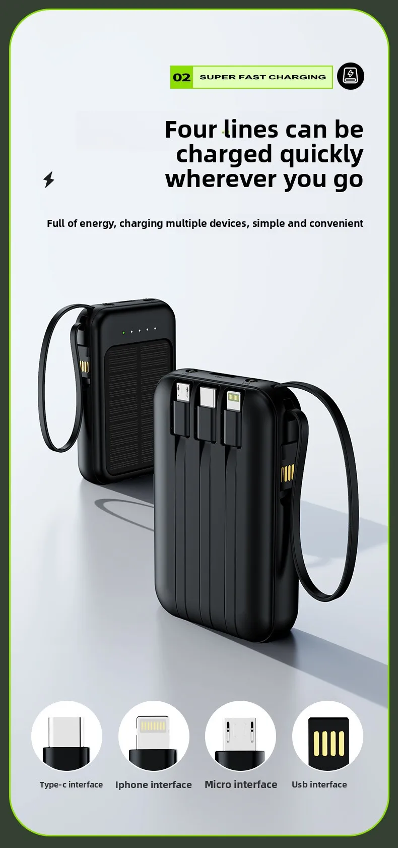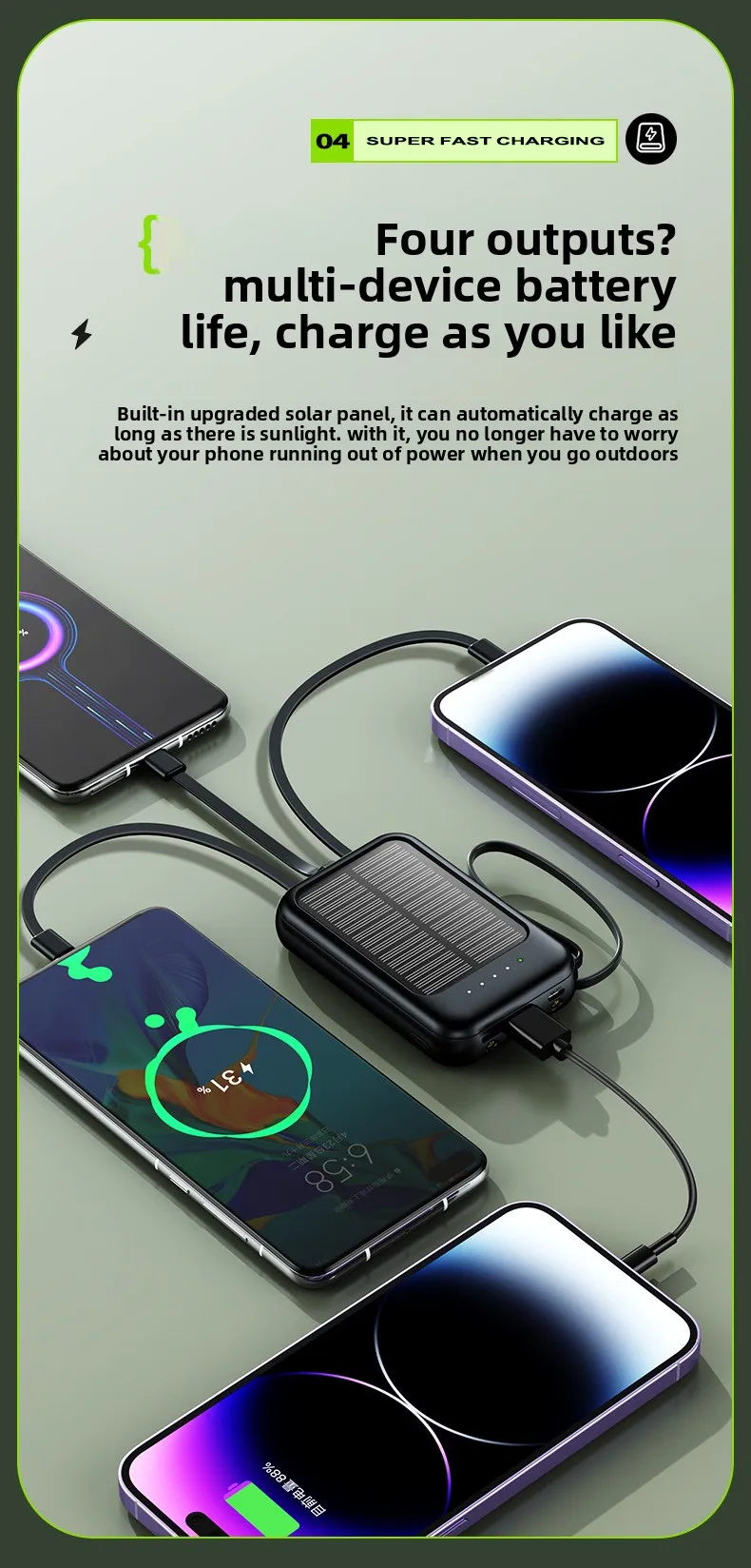 20000 MAh Large Capacity Solar Power Bank Portable Self-contained Four-wire Mini Power Bank Wholesale 4 Outputs And 3 Inputs