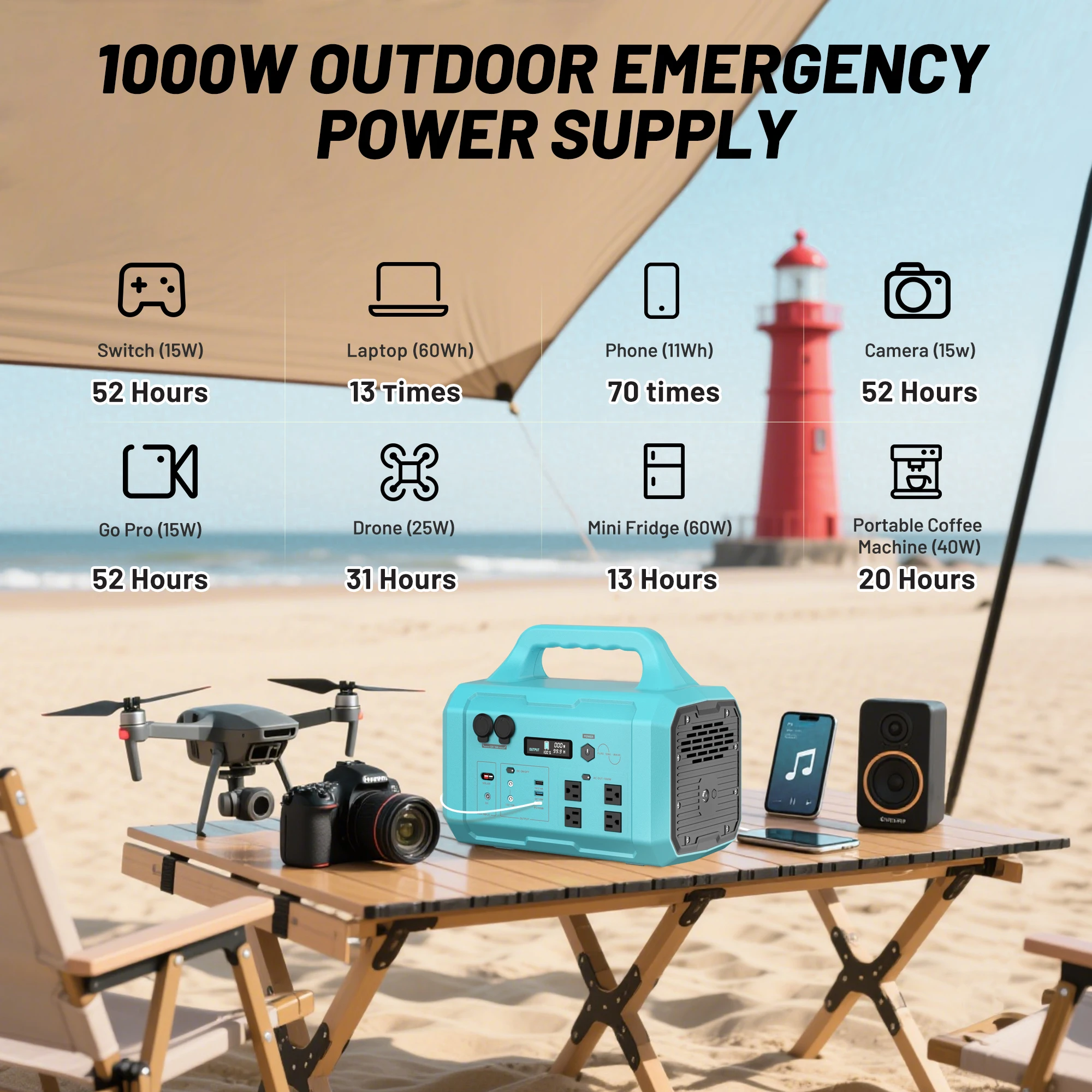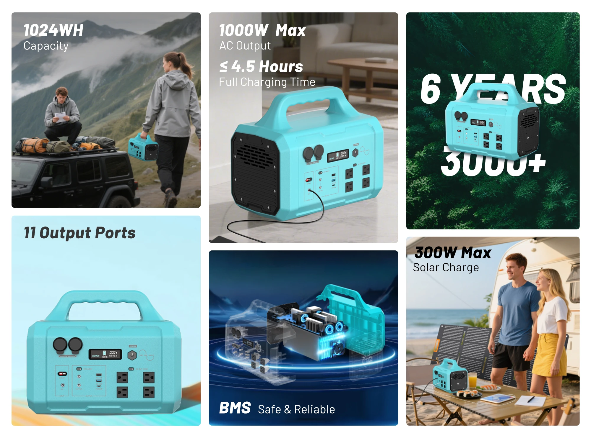 Blue Galaxy 1000W High-Power Generator + 200W Solar Panel Portable Power Station Plug and Play