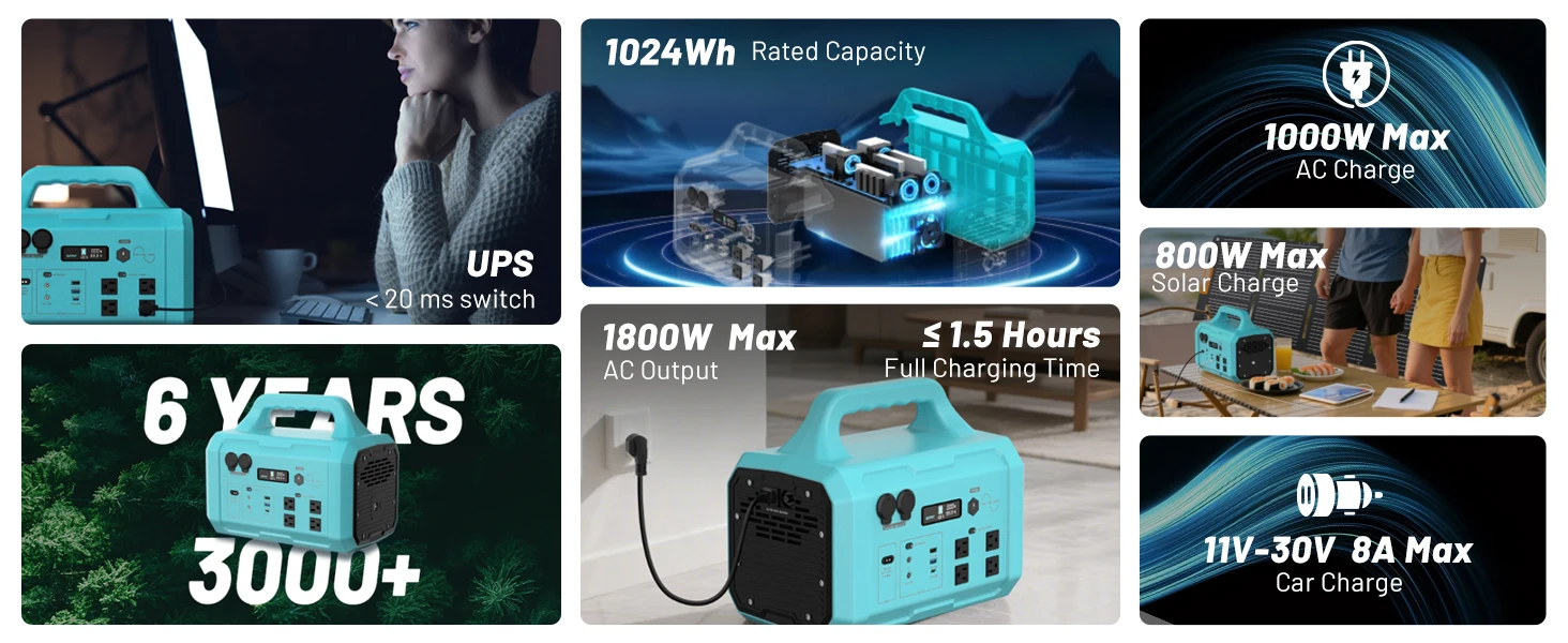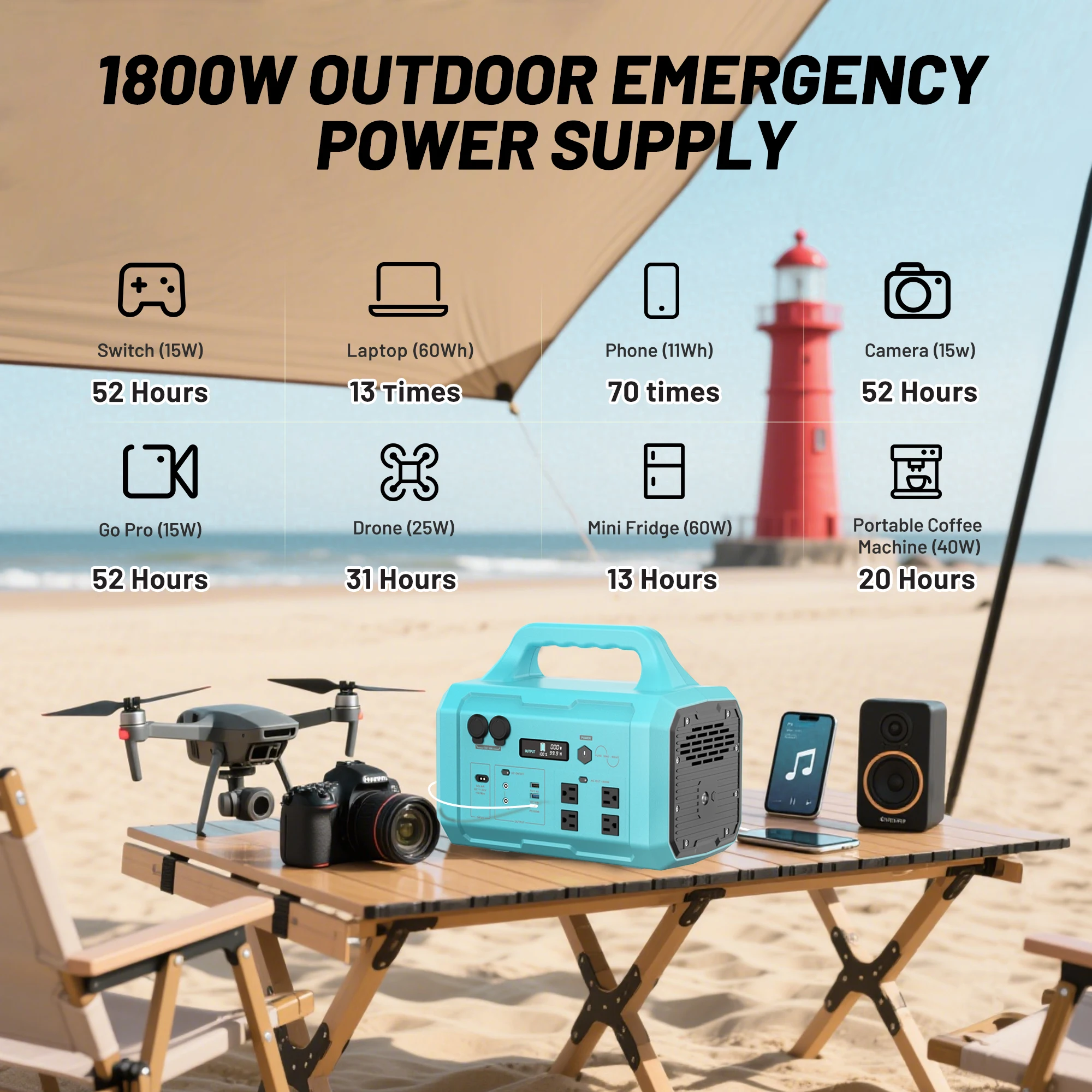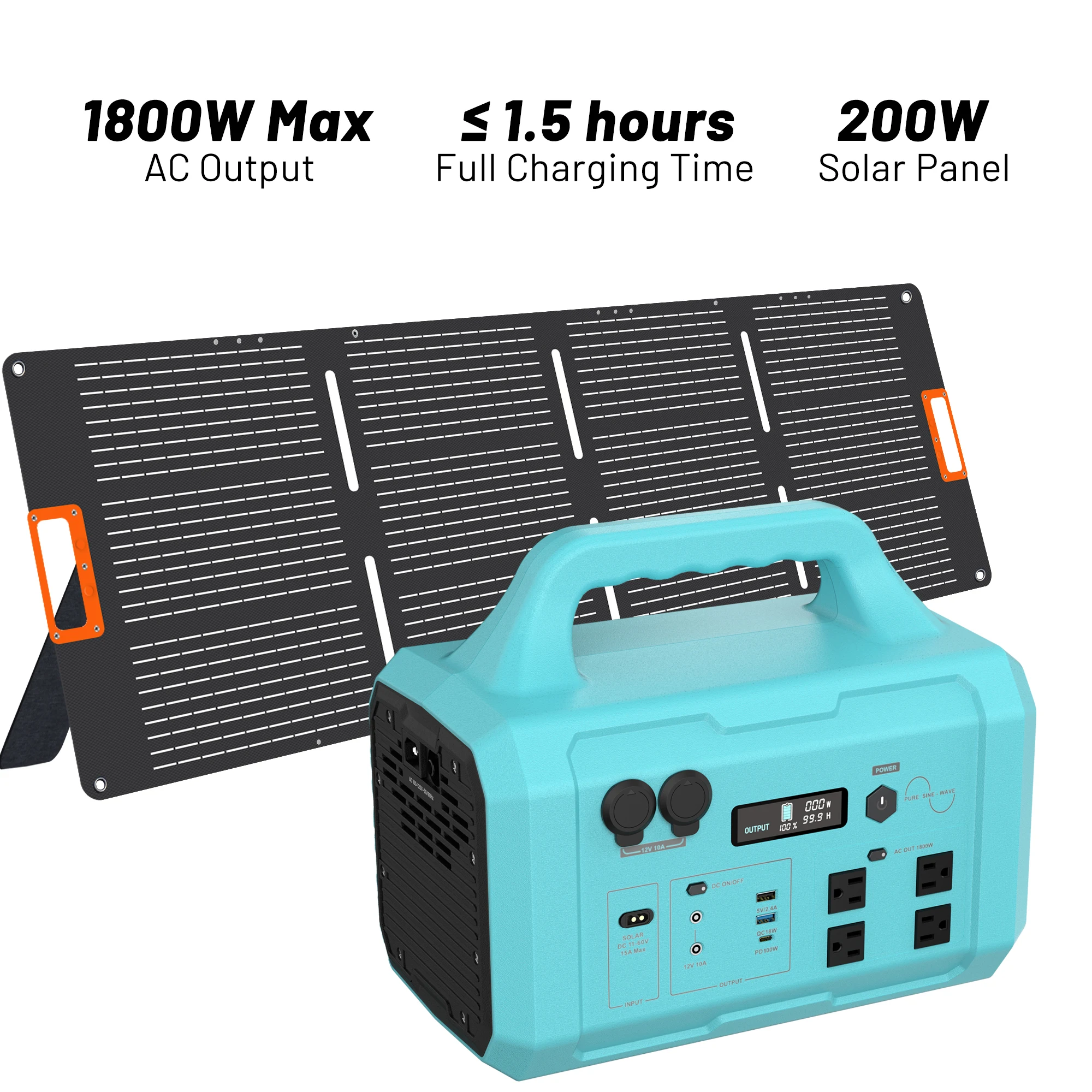 Blue Galaxy 1800W High-Power Generator + 200W Solar Panel Portable Power Station Plug and Play