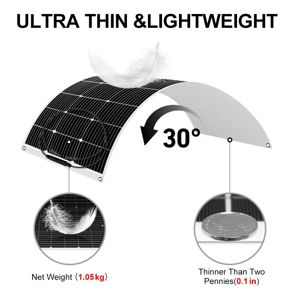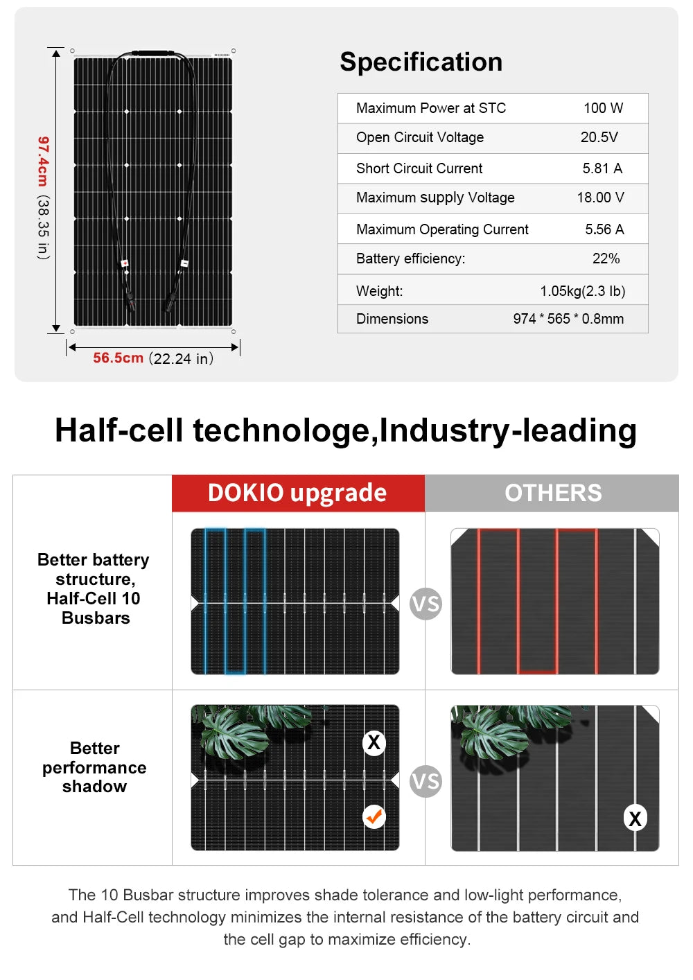 DOKIO 4PCS 100W solar panel 18V monocrystalline flexible panels suitable for camping, RV installation can charge 12V batteries