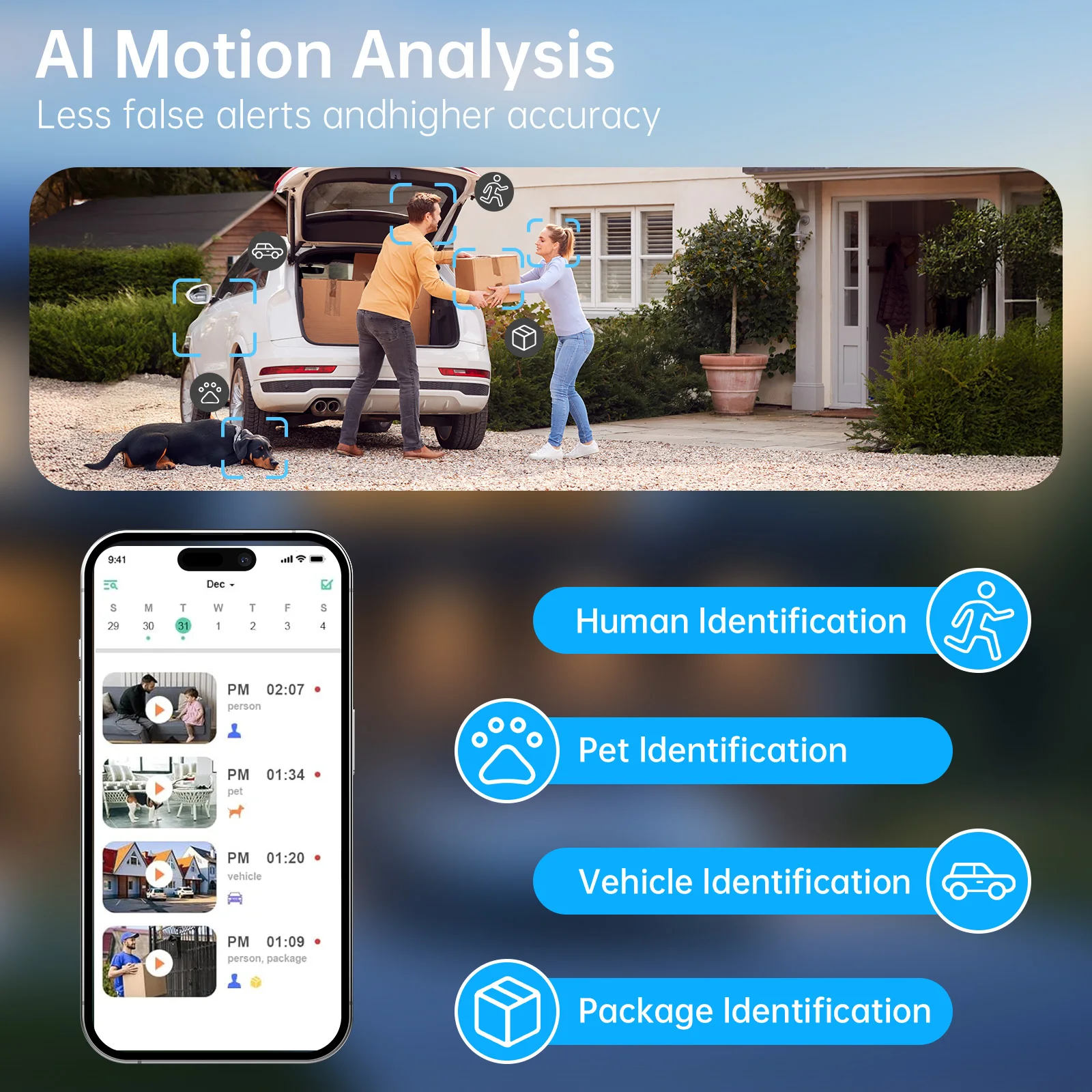 - Low Power Consumption (PIR+motion detection) - Video: Support snapshot and record when trigger alarm. - Notification:Device romote call, Image,Voice detection notification supported. - Function: Audio+lights+2way audio - Light: 4pcs IR light+2pcs white light - Support: TF Card up to 128GB /cloud storage